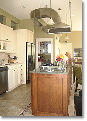 A gourmet kitchen anchors the main level, which consists of a dinning area, walk-a-round Island Stone fireplace, sun porch, one and a half baths, a pantry with a washer and dryer, and a bedroom/den. Upstairs you will find a large master bedroom with a king size bed, window seat, and a walk-in closet. This room offers a spectacular view of the beach and the water. Adjacent to the master suite is a large bathroom with a luxury air tub, a stand up shower with massage jets and seat. The room provides a wonderful place to end the day – after either spending it on the beach, or touring around the Island. The second floor also offers two other bedrooms, one with a queen bed, and the other a set of bunk beds (single on the top, double on bottom).